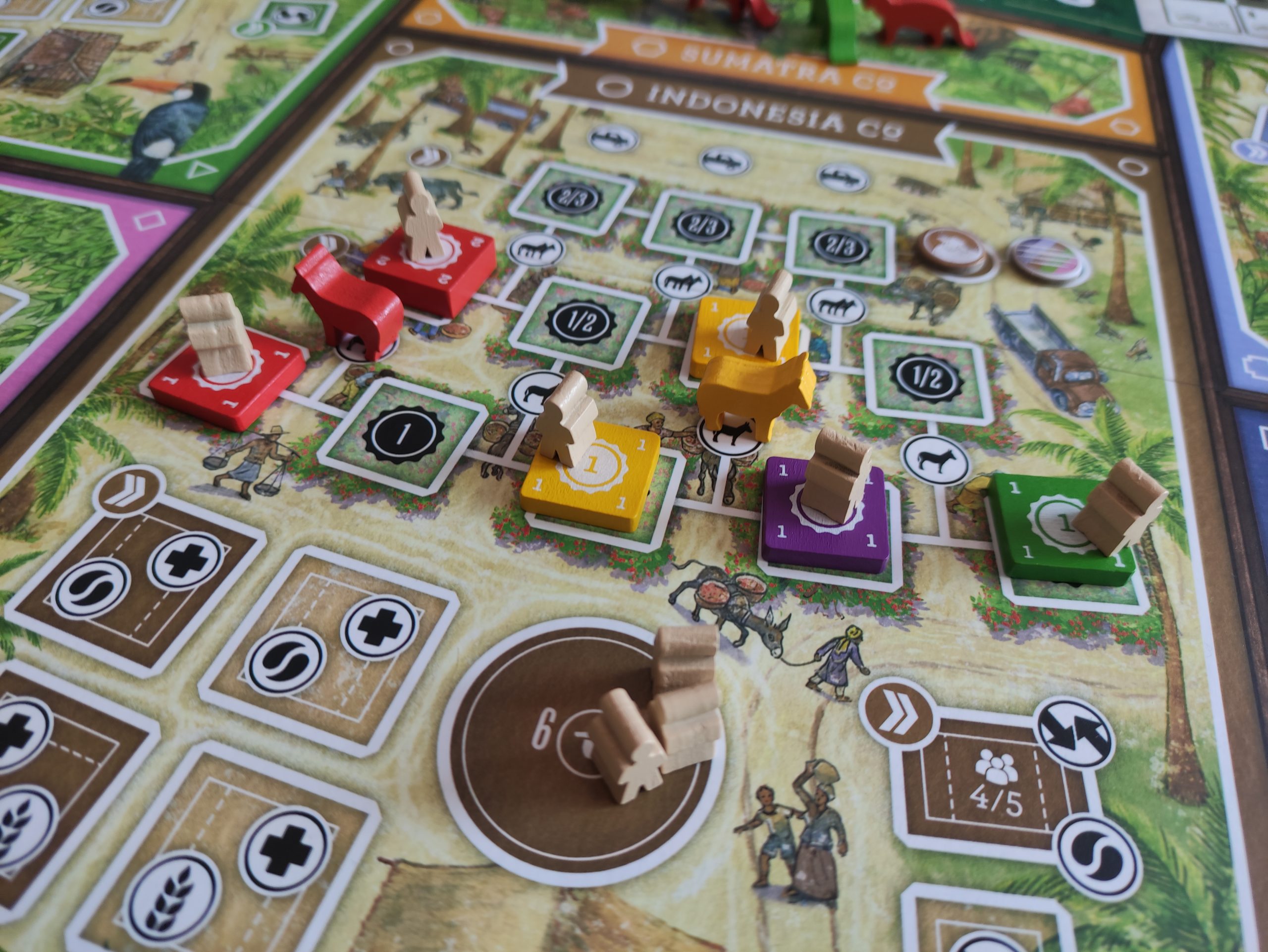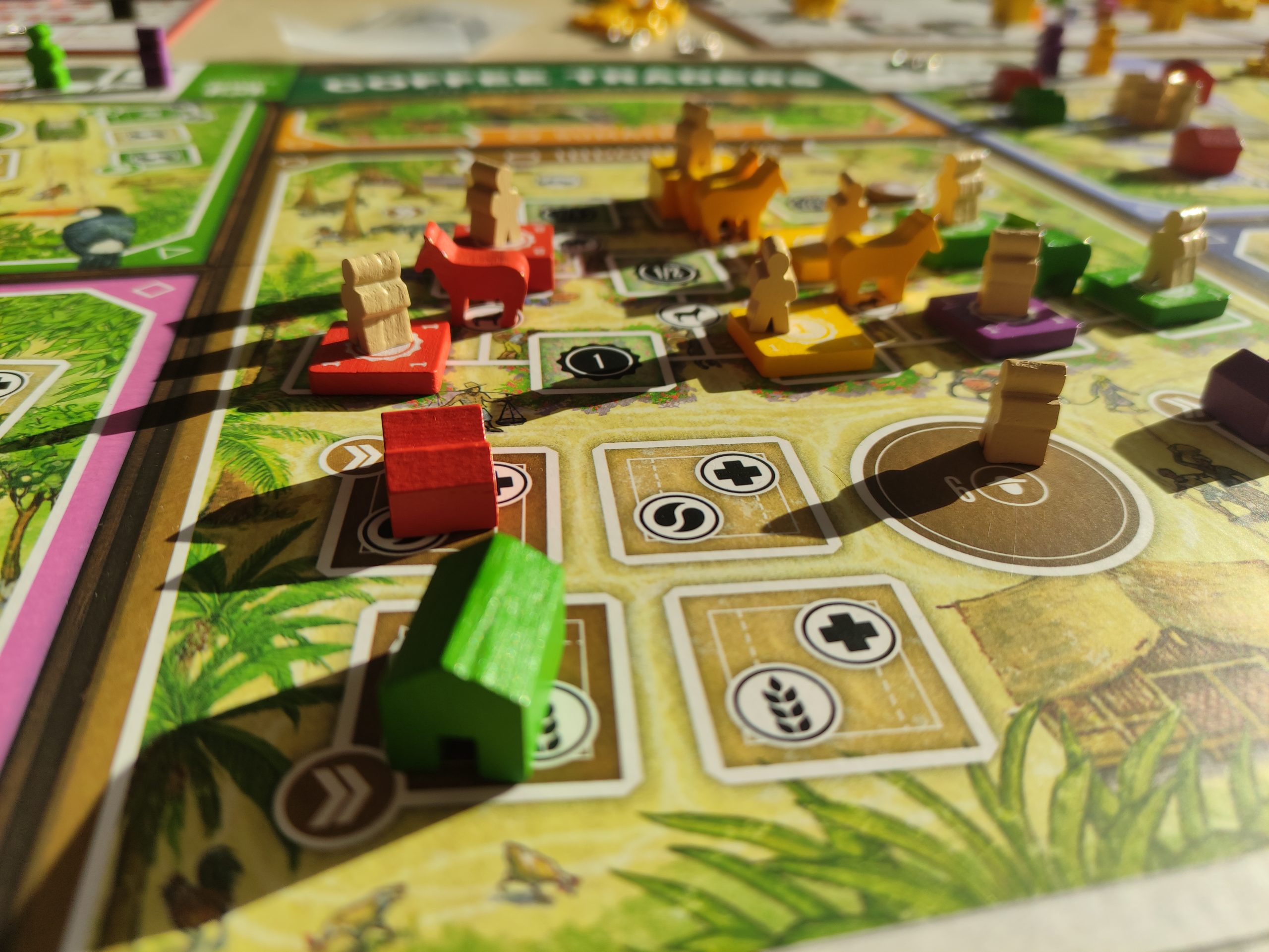 Franchement c’est assez simple dans l’absolu, du moins pour les actions de base (1-2) qui doivent un peu s’enchainer. Mais les ressources sont limitées et on a besoin de gagner un âne ou un responsable ou gérer de l’argent et les ressources sont parfois complexes à collecter. Cela force à faire certaines actions dans un ordre précis pour éviter de se retrouver coincé. Mais si l’on veut le jeu peut largement ralentir, pour deux raison :