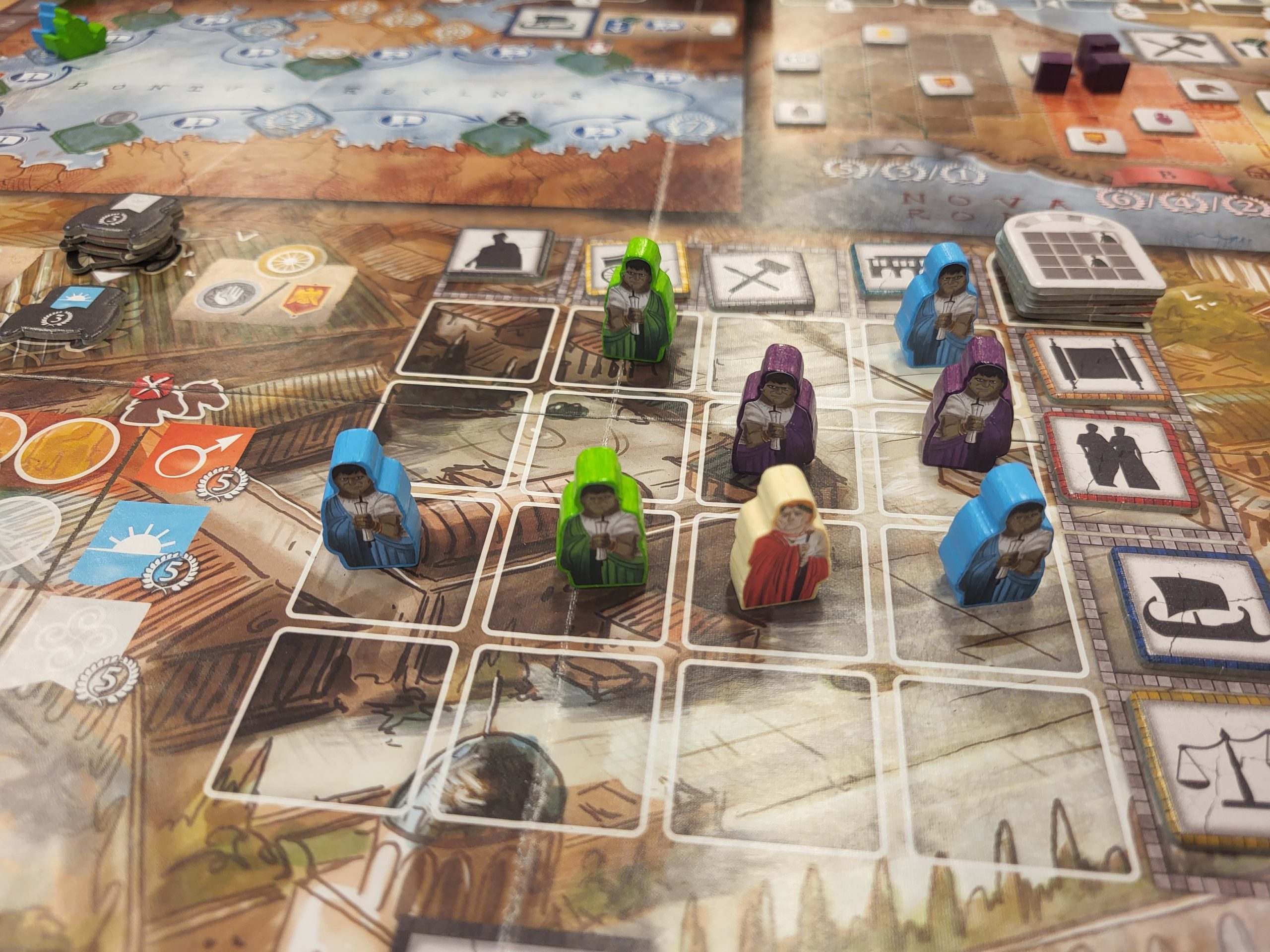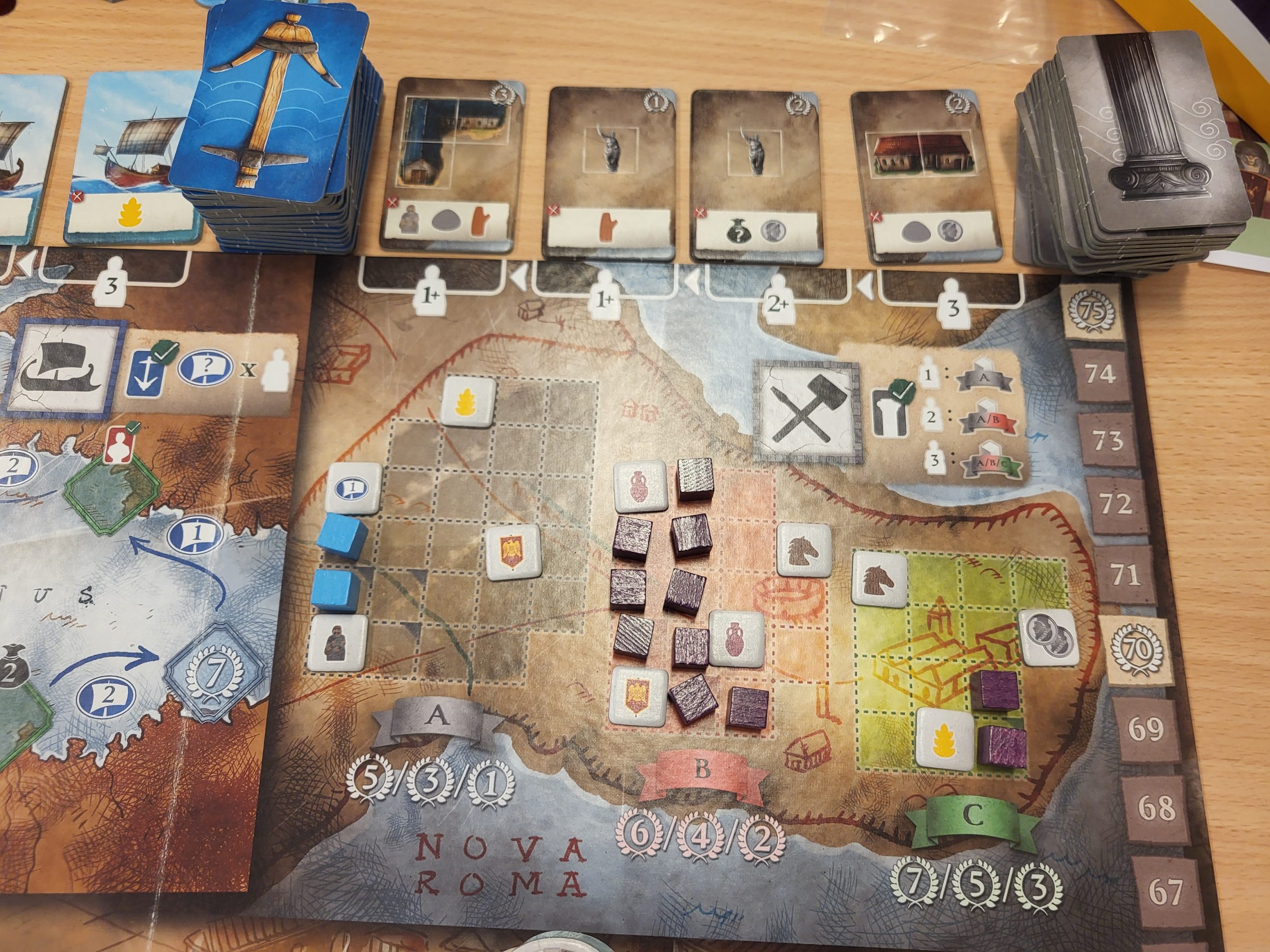 Il était temps de jouer au dernier jeu pick à Essen 24, Nova Roma. Ce n’était pas une priorité puisque le jeu m’avait été présenté comme une version européenne d’un jeu paru aux USA en 2023. Mais le calme de ce début d’été me permet enfin de le sortir.