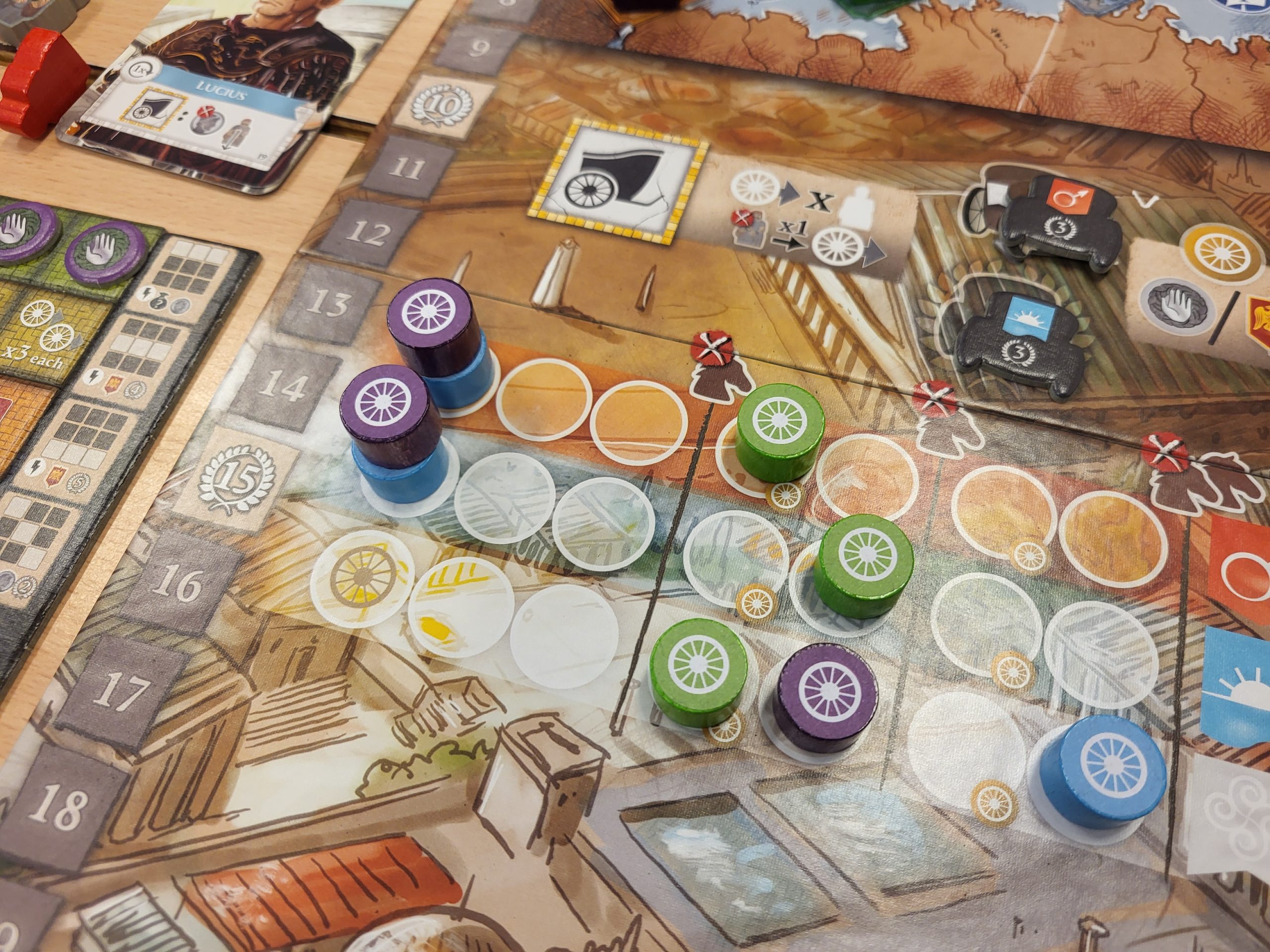 Vous comprenez rapidement que vous ne ferez pas tout, que le jeu est riche en options, et que le placement des ouvriers est votre bataille pour profiter de VOS actions, et surtout pour les réaliser avec des bonus.