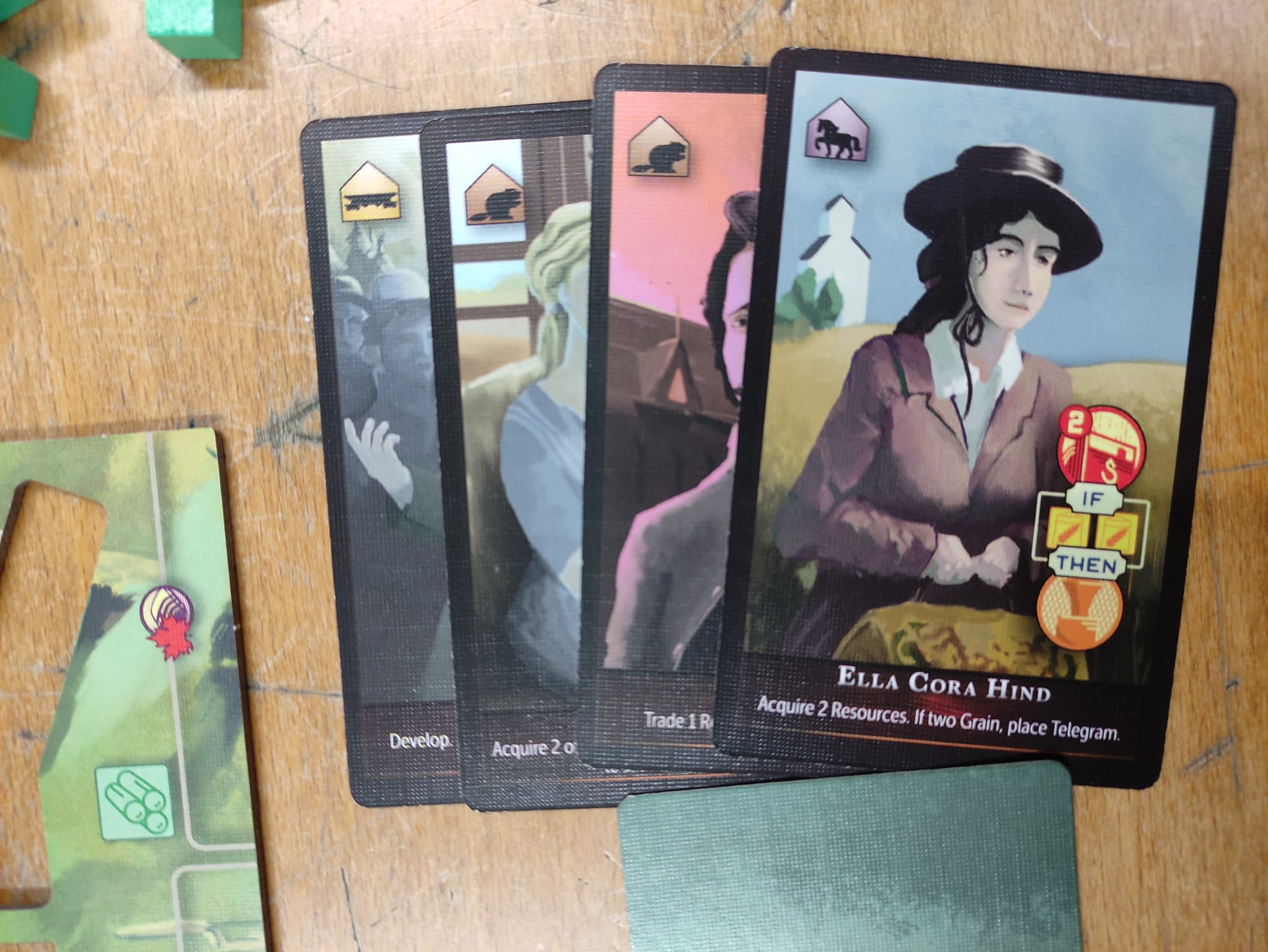 On repart ainsi de plus belle sur une nouvelle manche. Nos actions peuvent être renforcées grâce à des alliés (des cartes) collectés en chemin, tandis que notre objectif d’investissement nous incitera à développer certaines petites villes au lieu d’autres pour y placer nos maisons synonymes de PV et d’action réservées.