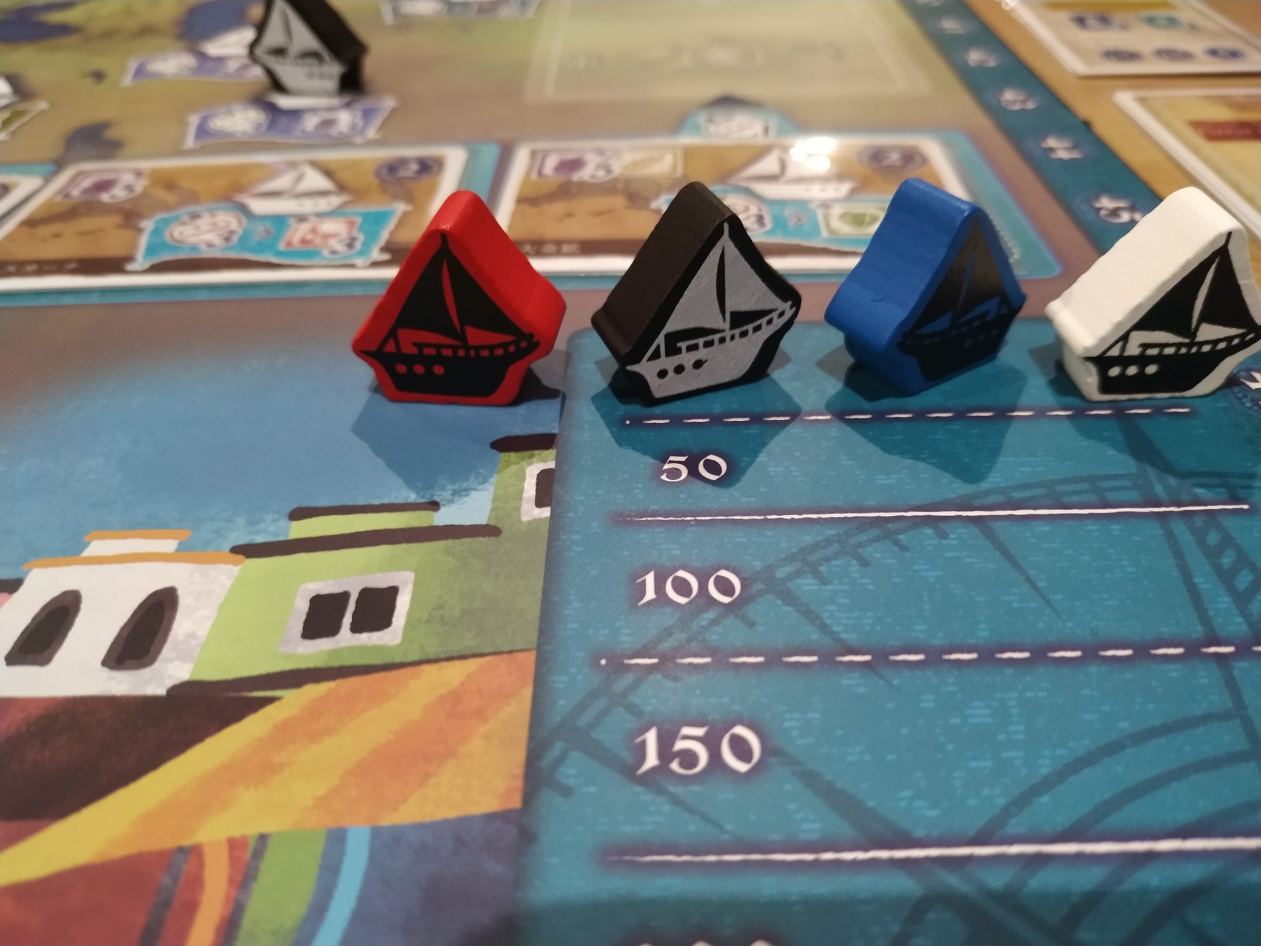 On comprend vite qu’il va falloir comboter, planifier, sélectionner et passer avant les adversaires qui semblent stocker les mêmes ressources que nous. Une possibilité existe d’accélérer les choses à la course aux objectifs (que ce soit une carte visée ou un des milestone du jeu qui rapporte bcp de PV) en décidant de faire rentrer son bateau au port pour 3 ressource au choix. C’est une décision lourde, car il ne sera plus disponible avant la manche suivante et ne pourra ainsi plus faire d’action / ressource.