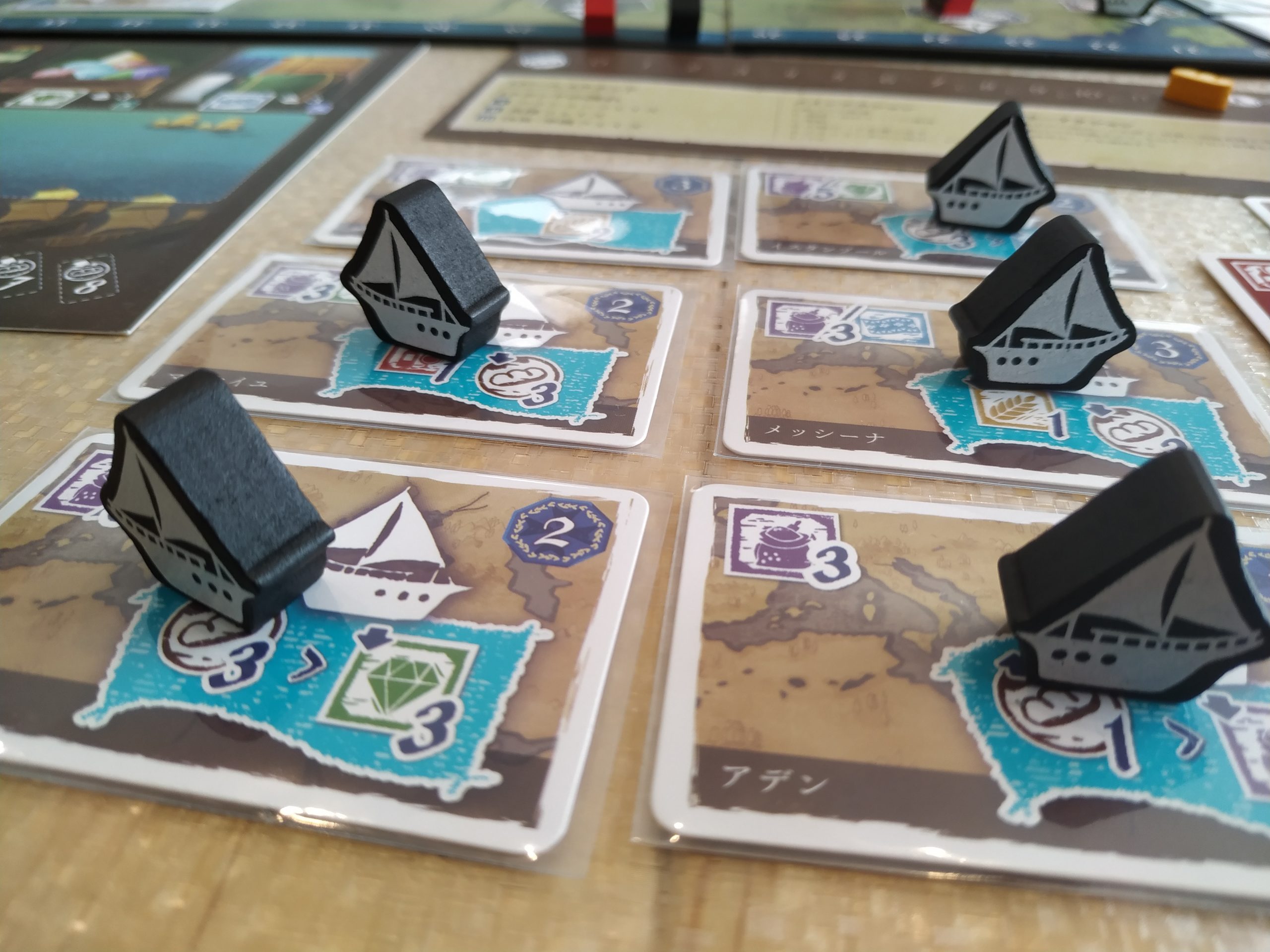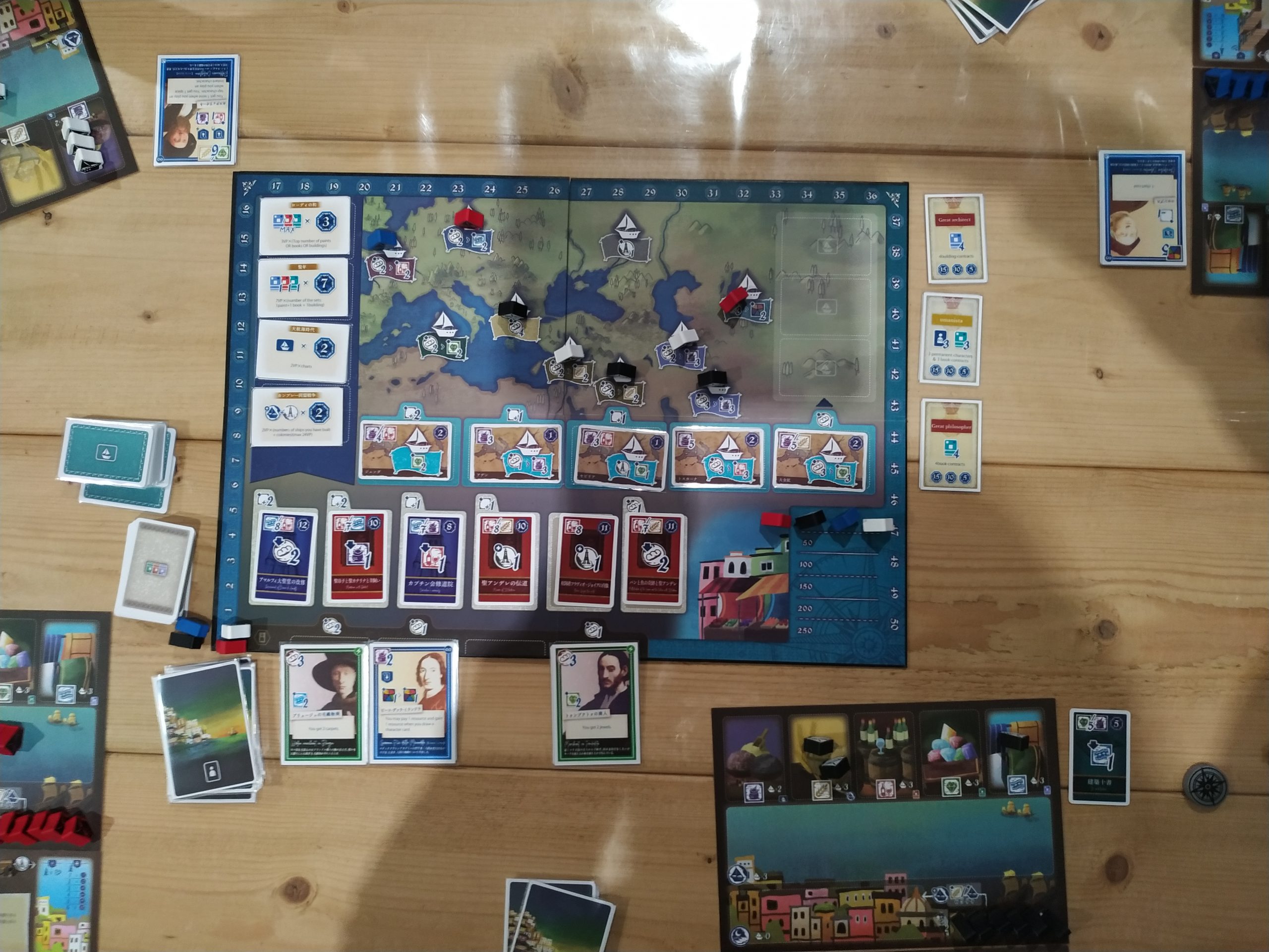 Le jeu est hyper simple dans ses explications (et le sera encore plus dans la VF de Sylex, qui j’espère aura corrigé les erreurs de traduction JP => EN) et pourtant hyper combinatoire ! Jubilatoire presque ! Enfin, pour peu que vous ayez bien estimé vos capacités et actions, que vous ayez acheté assez de bateaux, car si (comme une des joueuses) vous avez un peu foiré votre développement vous risquez fort d’être le premier à passer et regarderez alors les autres jouer sans rien faire durant (peut-être) de looooongues minutes ! Mais si vous jouez bien vos choix, ce sera la fête jusqu’au bout !