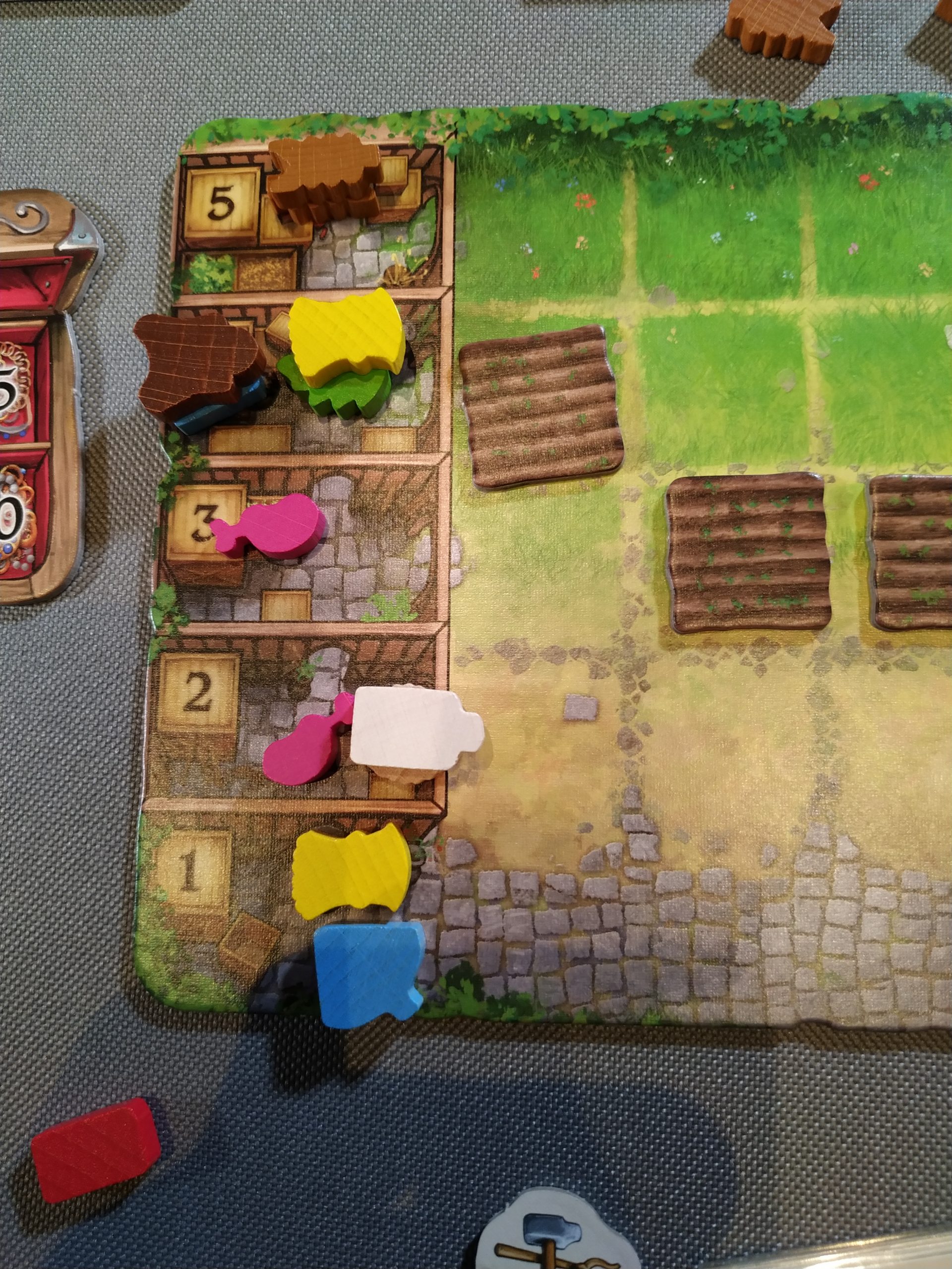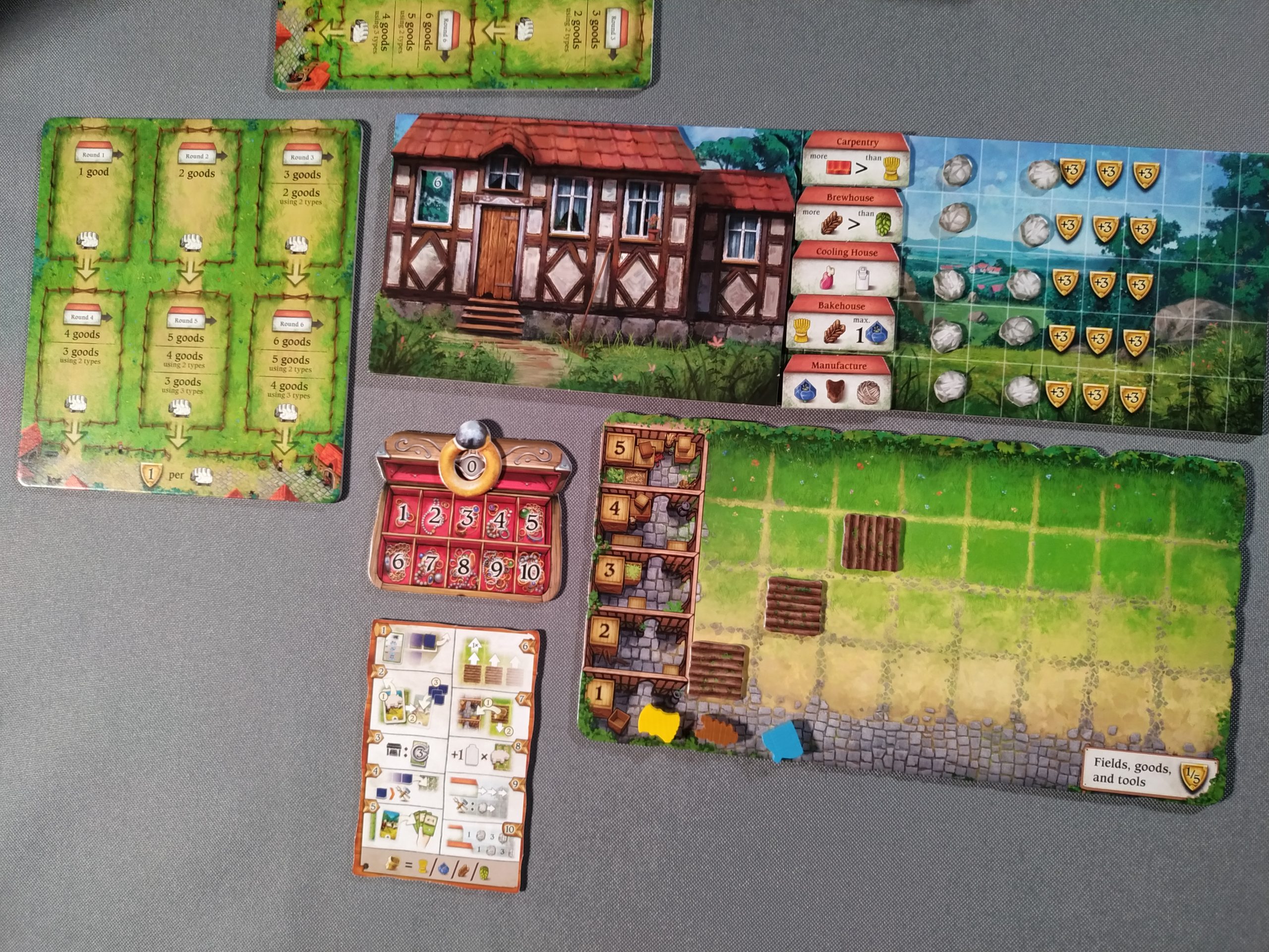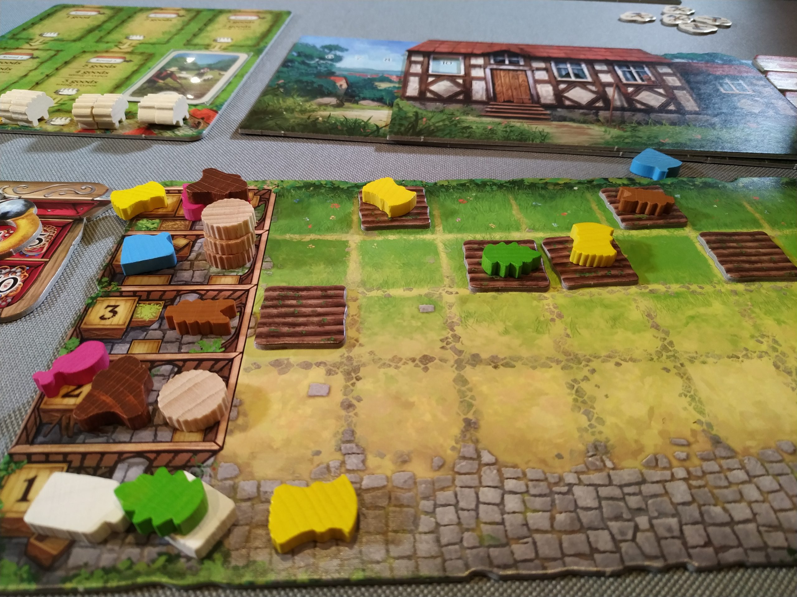 Dix phases de jeu s’enchaînent sur 6 manches. Chacune commence par récupérer des cubes, selon le nombre apparaissant dans la fenêtre de la maison, et retirer la ligne de cube supérieure de chaque case du plateau principal. On placera ensuite, chacun son tour, des cubes sur la première ligne disponible d’une case d’action que l’on effectue de suite. Il serait long de décrire toutes les actions possibles, mais en globalement on va planter, récupérer des cartes ou des ressources. Les derniers cubes non utilisés seront transformés en outils.