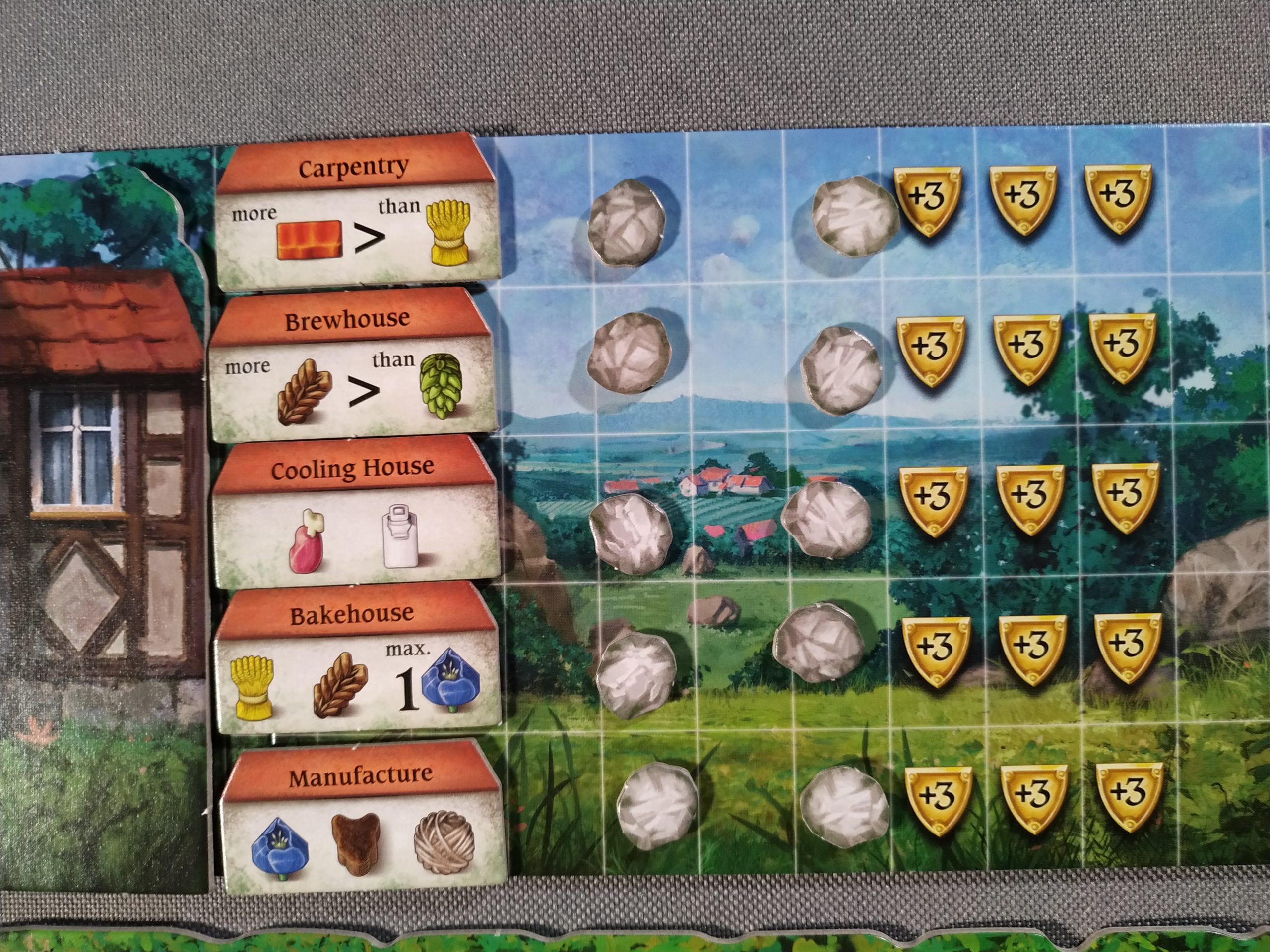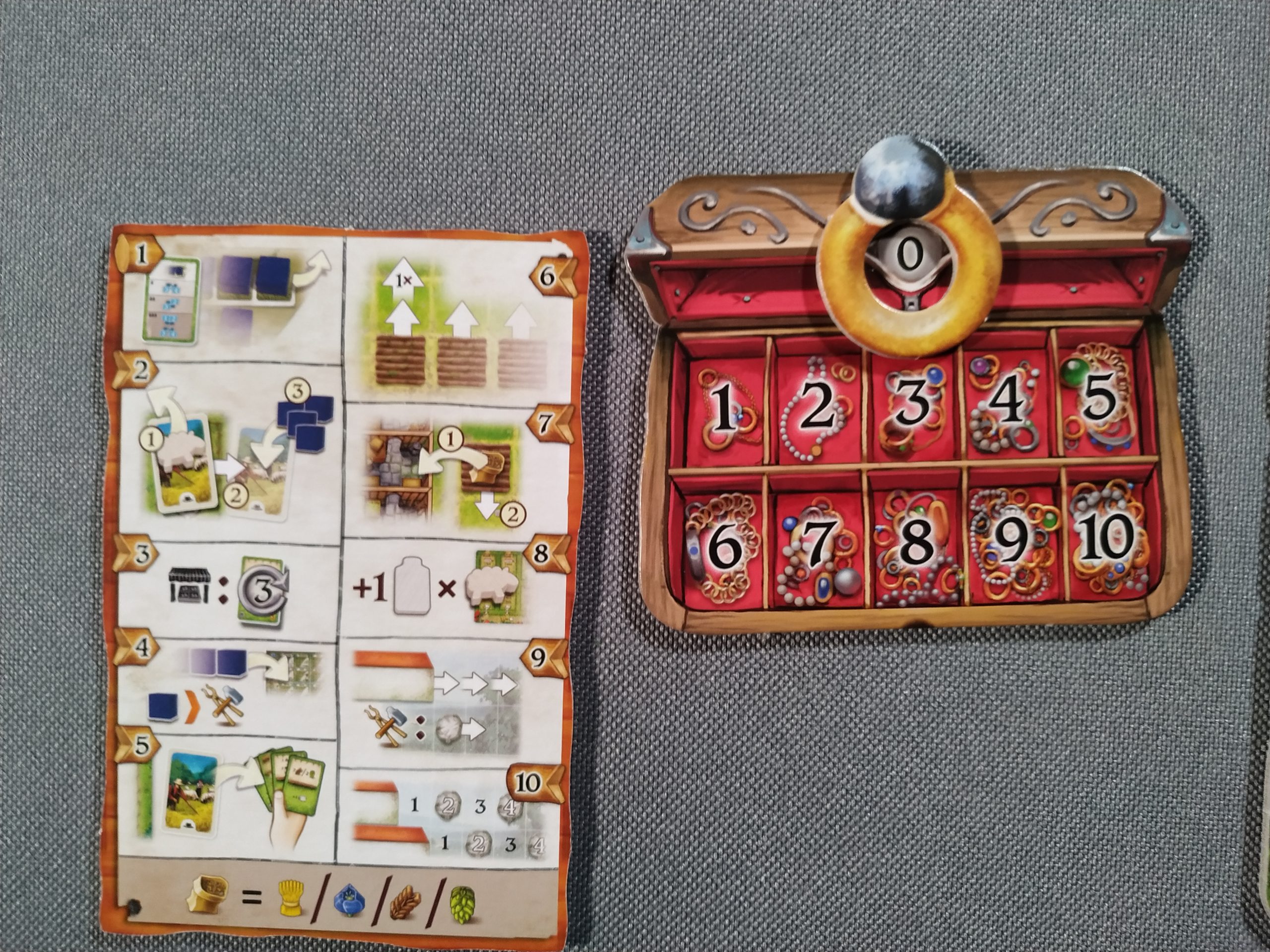 Sans doute qu’en connaissant chaque paquet de carte (4 niveaux de decks) on peut mieux doser l’énergie qu’il est utile de mettre dans les cartes par rapport à la maison, étant de plus en plus compliquées à utiliser dans le rythme. Si l’on accepte de gagner (ou perdre), voire de pester, sur un tirage de carte plus ou moins favorable et que l’on se fait un petit tableau de progression simple à côté pour les ressources, Hallertau est un jeu plaisant et agréable à regarder. La définition de ses objectifs de placement et le regard permanent sur les ressources nécessaires à la progression de la maison (ce y compris le sacrifice de cubes pour avoir des outils pour les pierres) permet de ne pas vraiment voir le temps passer. S’il n’égale pas Le Havre, Hallertau peut être un bon choix lorsque l’on en a assez de rejouer avec les mêmes cartes à Ora et Labora. 🙂