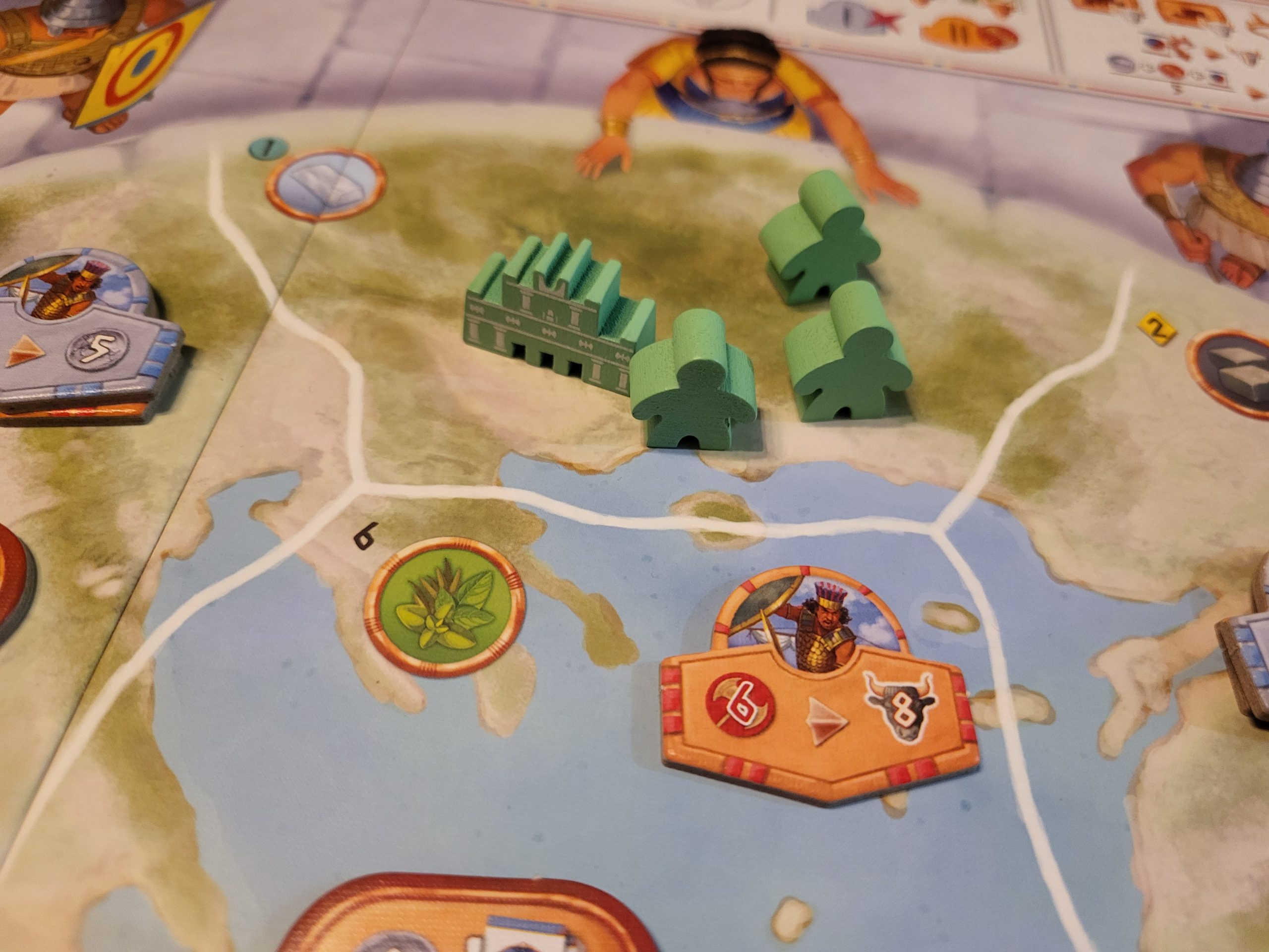 • Construire sur l’emplacement des troupes, une ville, une tour, une ferme. Construire et faire progresser un bateau sur une route de commerce. Les constructions sont de plus en plus chères et des réductions sont possible via les marqueurs de développement.