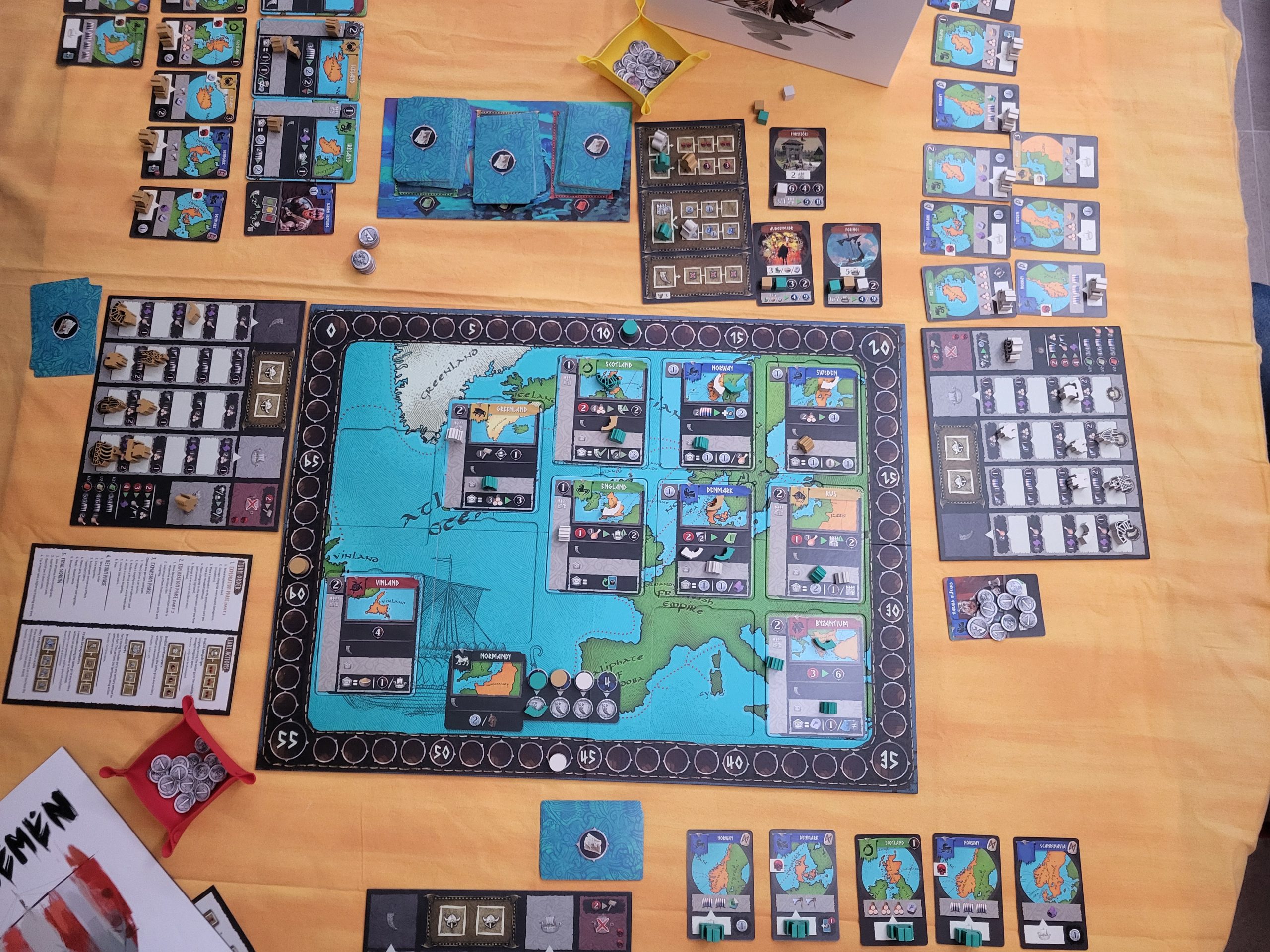 Dans Norsemen, de Christos Giannakoulas et Manolis Zachariadis, édité par Skellig Games, pas de combats violents pour la prise de territoires, pas de collecte de trésors, pas de pièces à manipuler… puisqu’il n’y a pas de ressources matérielles dans le jeu. Non, on part sur tout autre chose : un système à base de cartes et de déplacements maritimes.