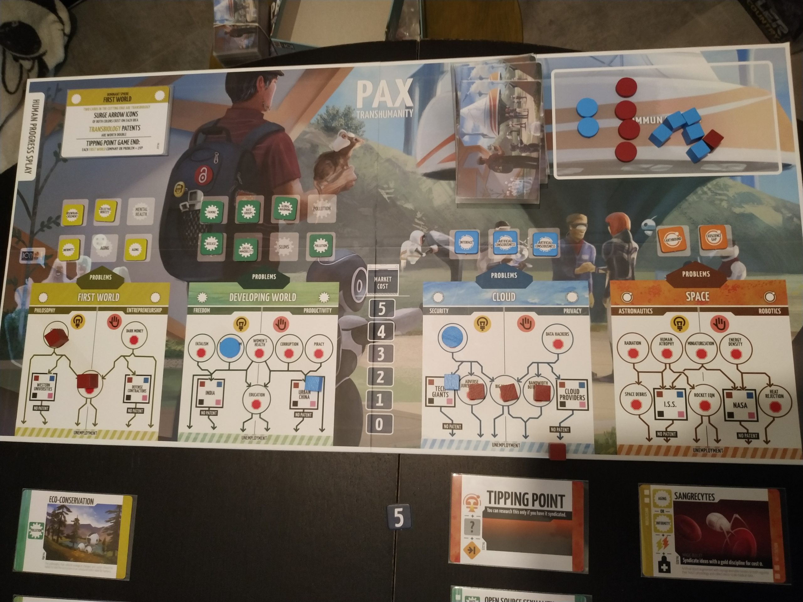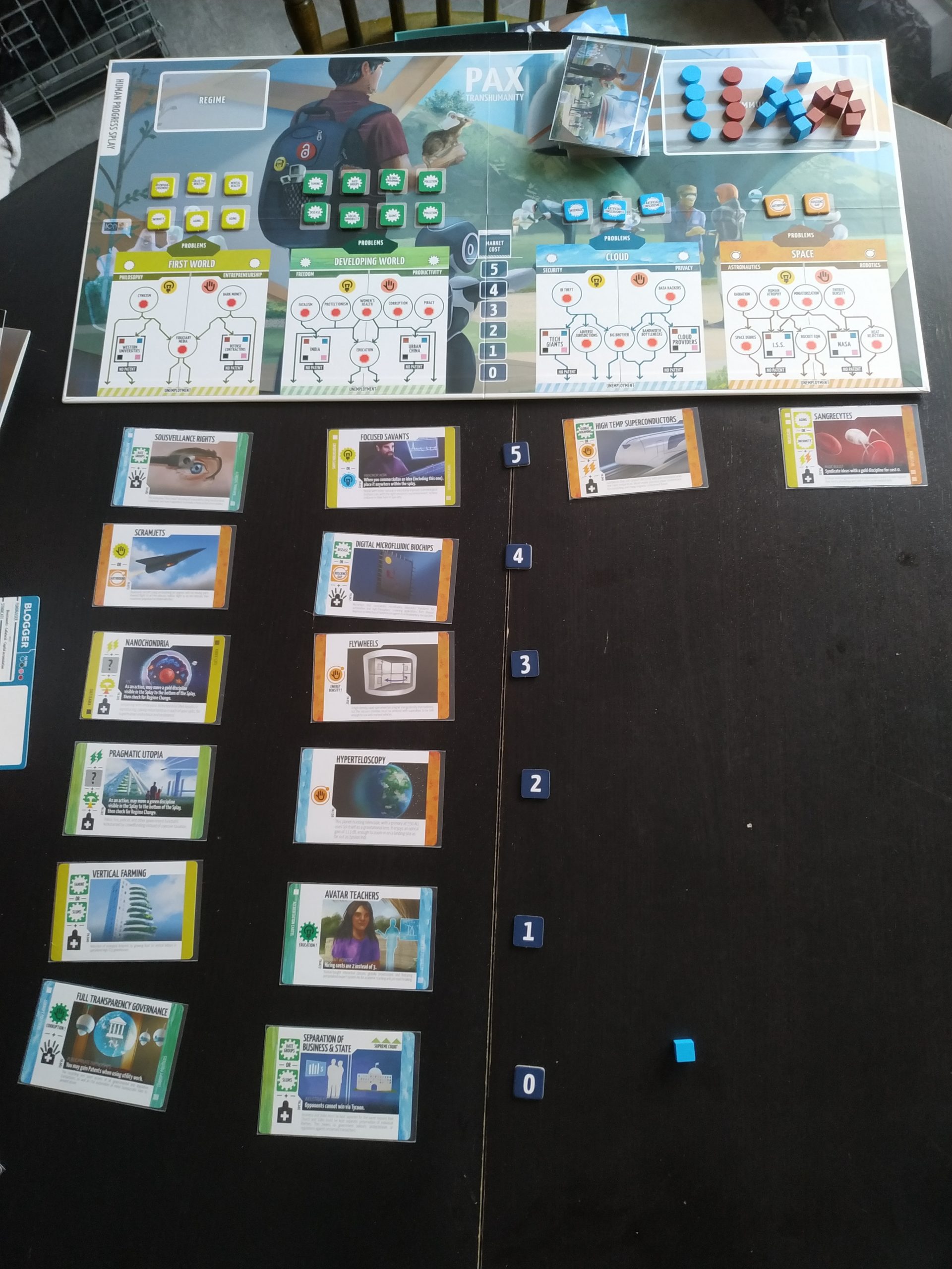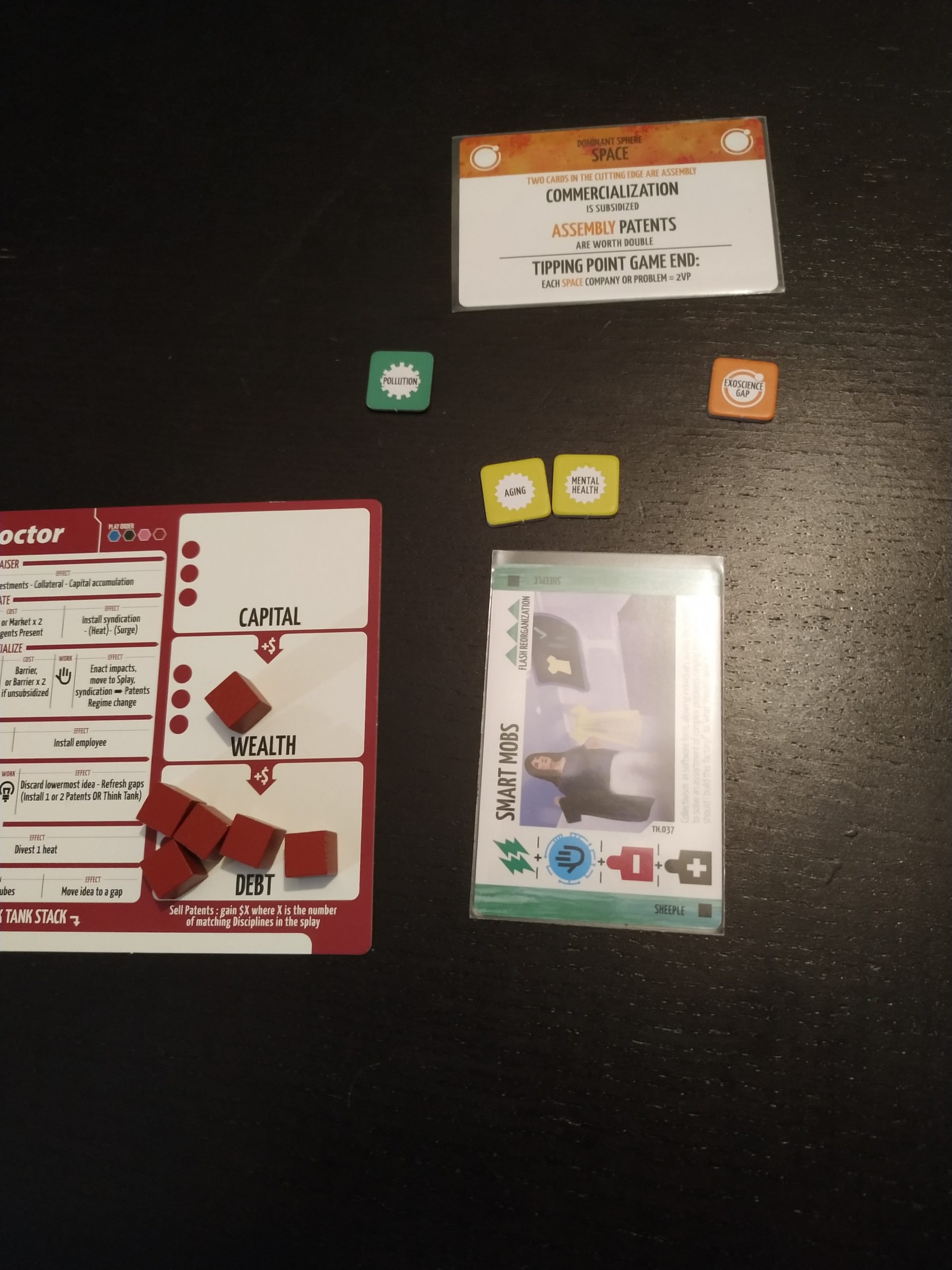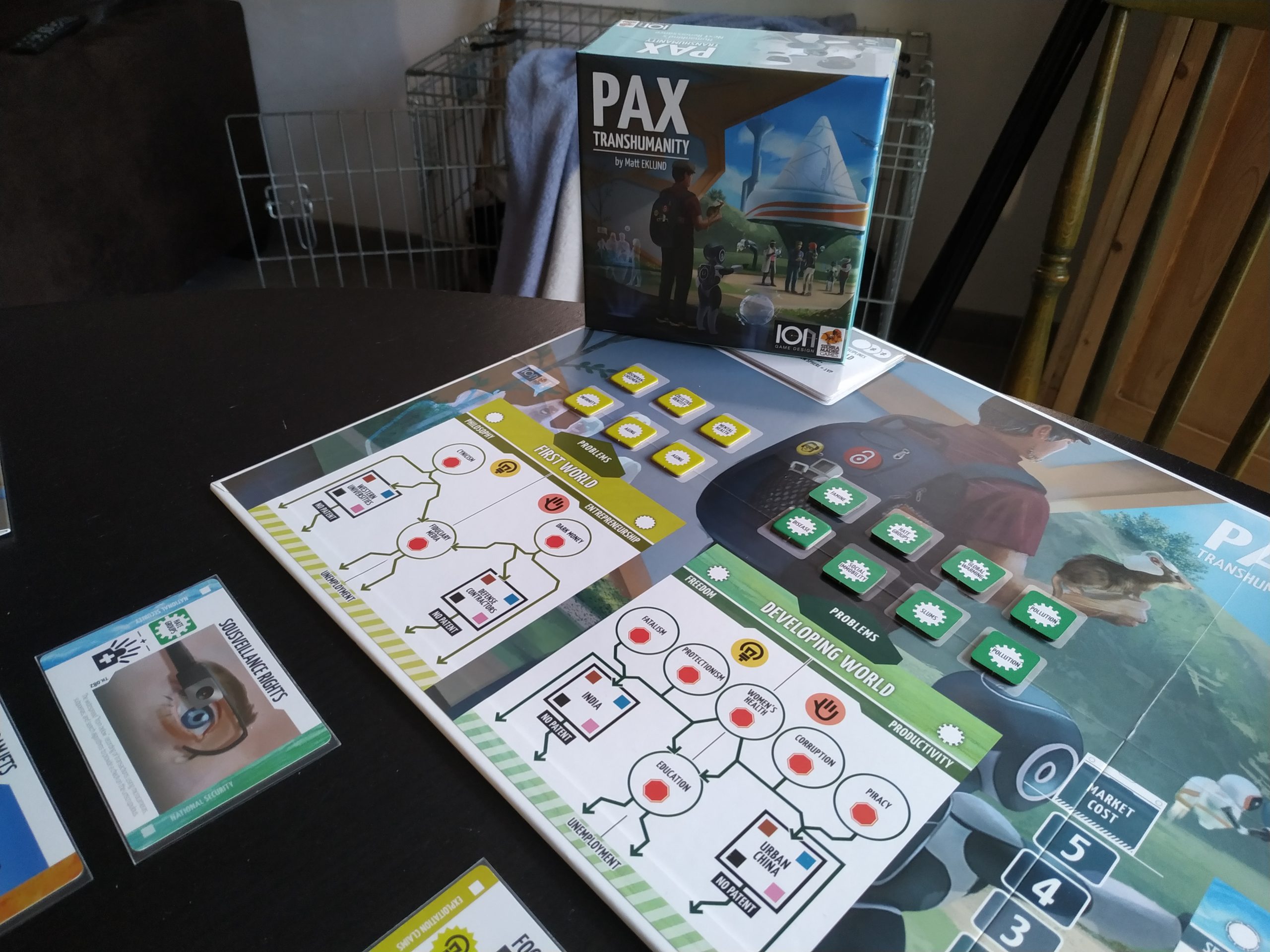Au final, s’il est complexe, il n’est pas aussi compliqué que je ne l’imaginais. Très bonne impression à deux joueurs, mais je me demande s’il n’est pas trop long (thinking) et trop chaotique à 4. À essayer très vite.