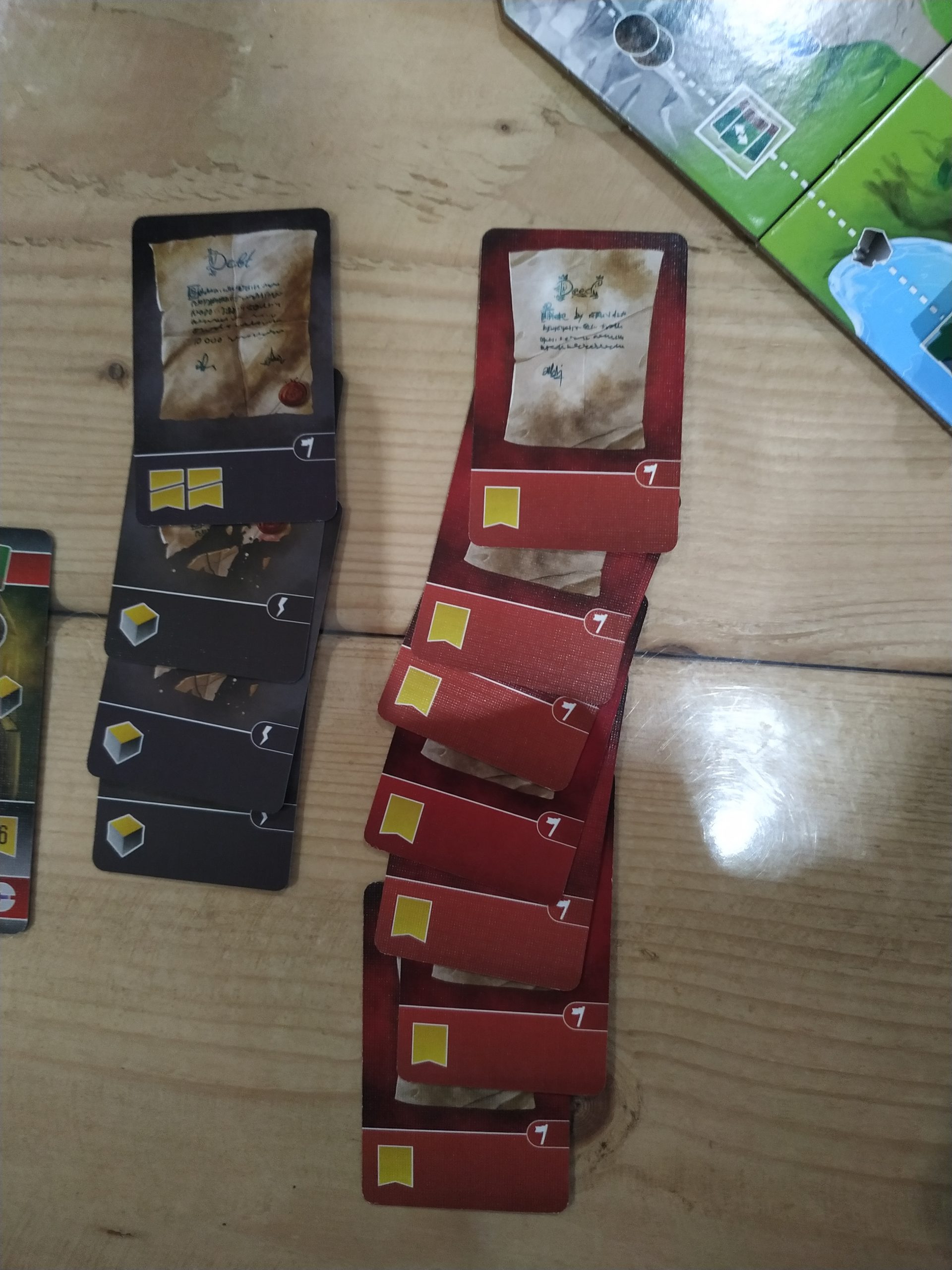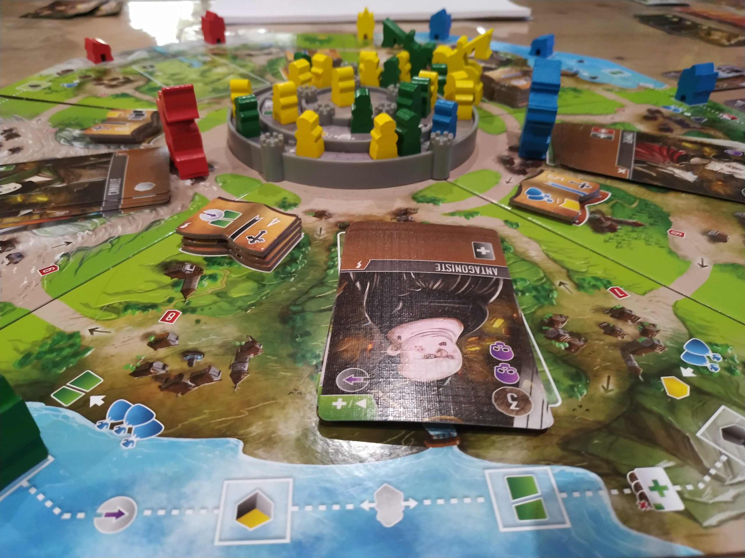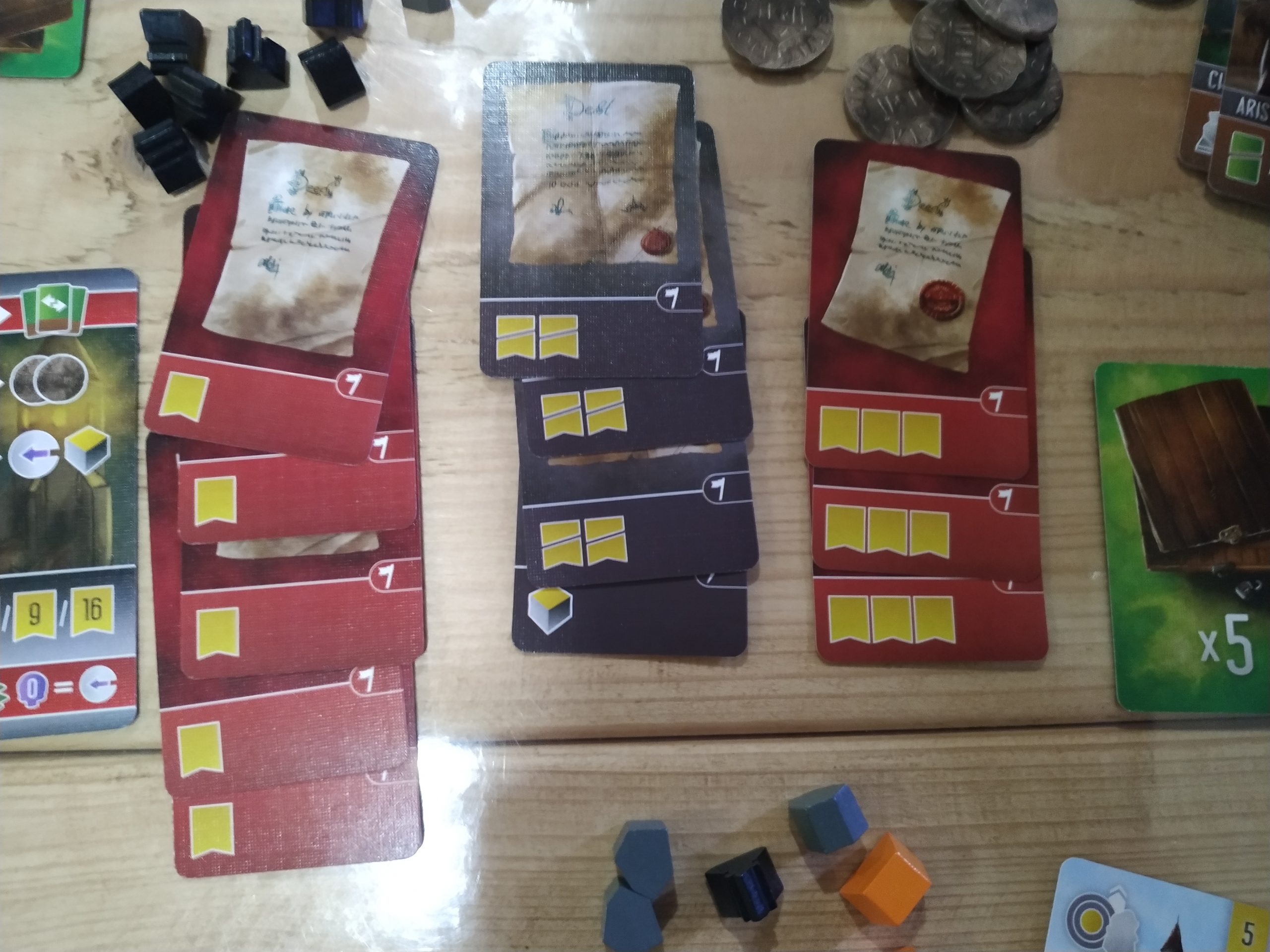 Concrètement, il faut 2-3 tours pour que tout rentre bien et ensuite cela devient plus fluide et on commence chacun avec l’idée d’une voie à explorer. Si le commerce est accessible par tous, on trouve des joueurs pour jouer les nobles (château), les manuscrits (prêtres) et bâtiments (pour les bonus). Le choix d’un héro au départ permet à un joueur de prendre son envol sur les manuscrits, tandis qu’un autre utilise les bâtiments pour s’assurer de retourner un maximum de ses cartes (dettes / titre de propriété).