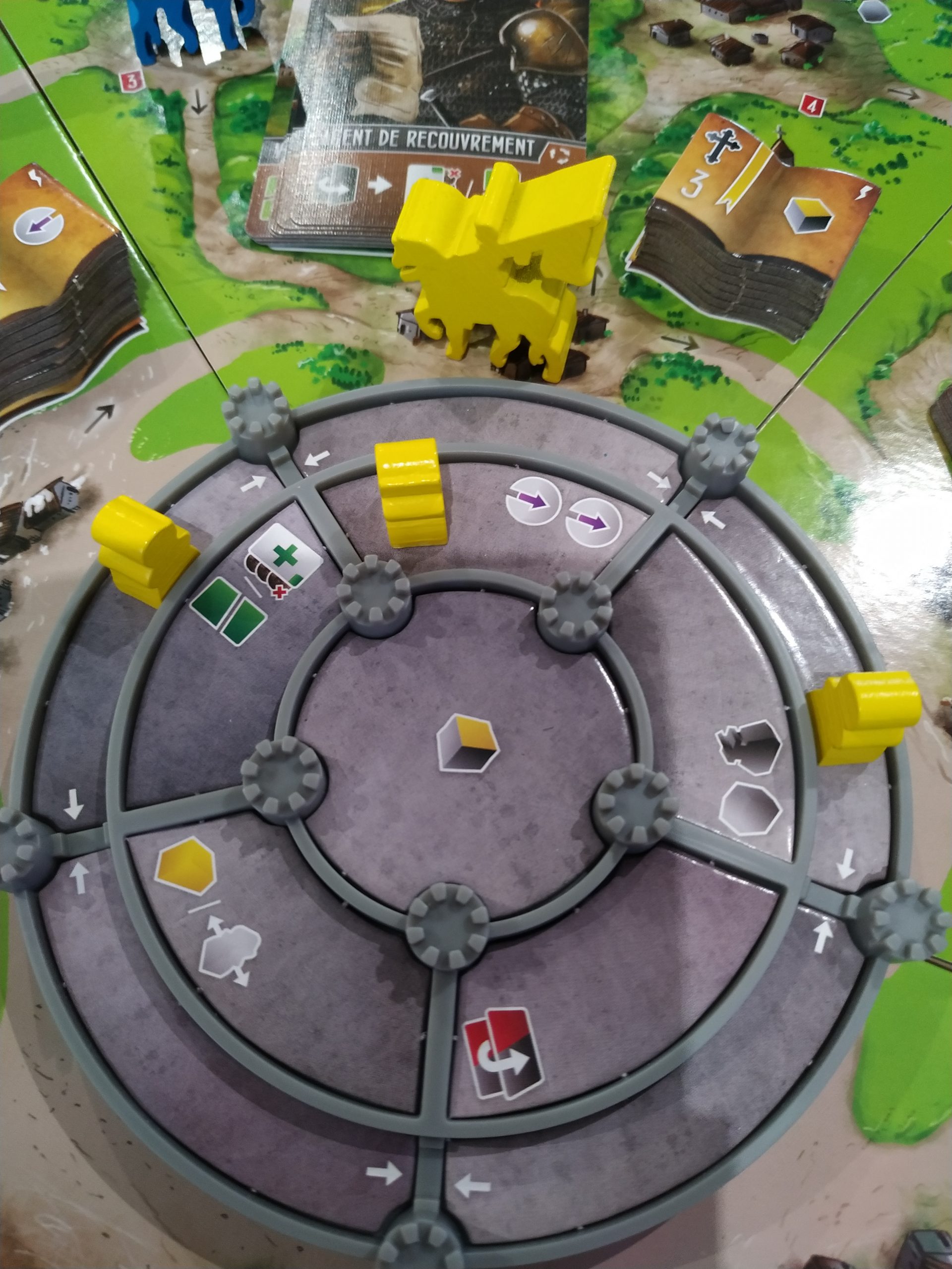 - Déplacer son vicomte : En suivant les flèches du plateau, avec ou sans mouvement supplémentaire pour des sous.